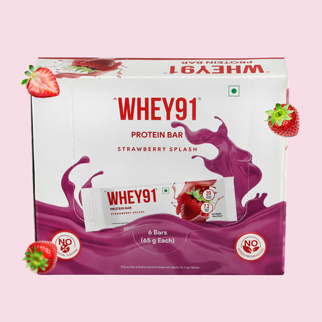 Unit price /UnavailableWhey91 Strawberry Splash Protein Bars - 20g Protein 7.2g Fibre (Pack of 6 bars)