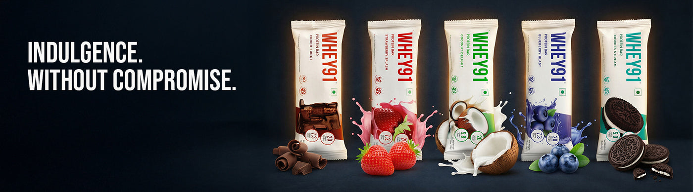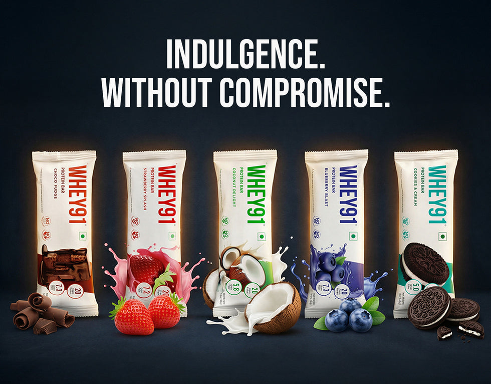 Available in a range of delicious flavours like choco fudge, cookies & cream, blueberry, and strawberry, Whey91 protein bars make hitting your protein goals both enjoyable and effortless. If you're aiming to build muscle, manage hunger, or simply snack smarter, these bars are your perfect high-protein companion.