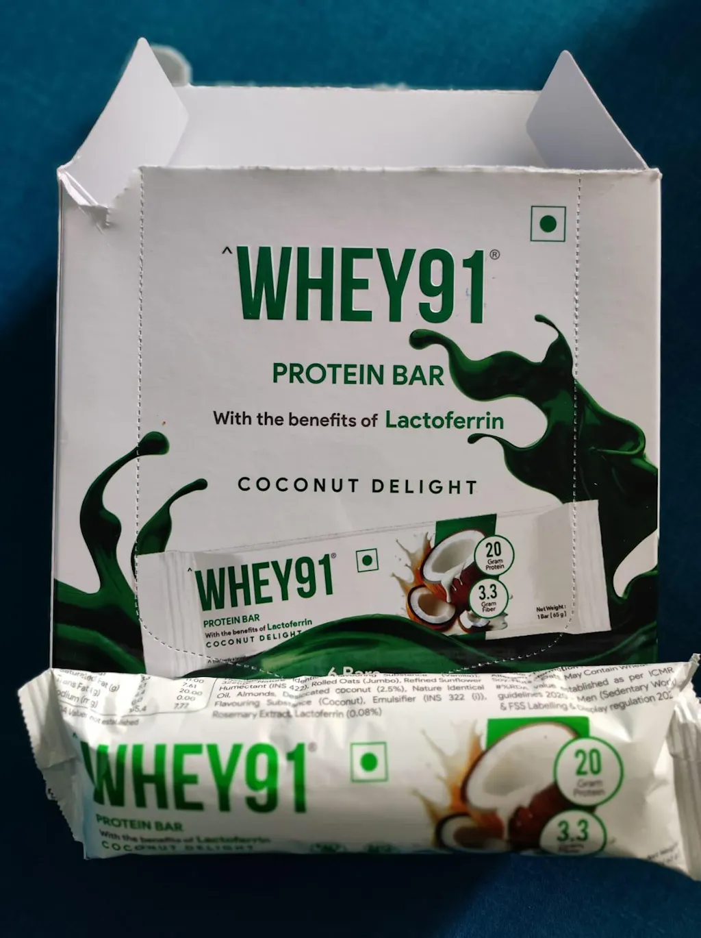 Each 65g bar of Whey91 contains premium protein content of 20g.