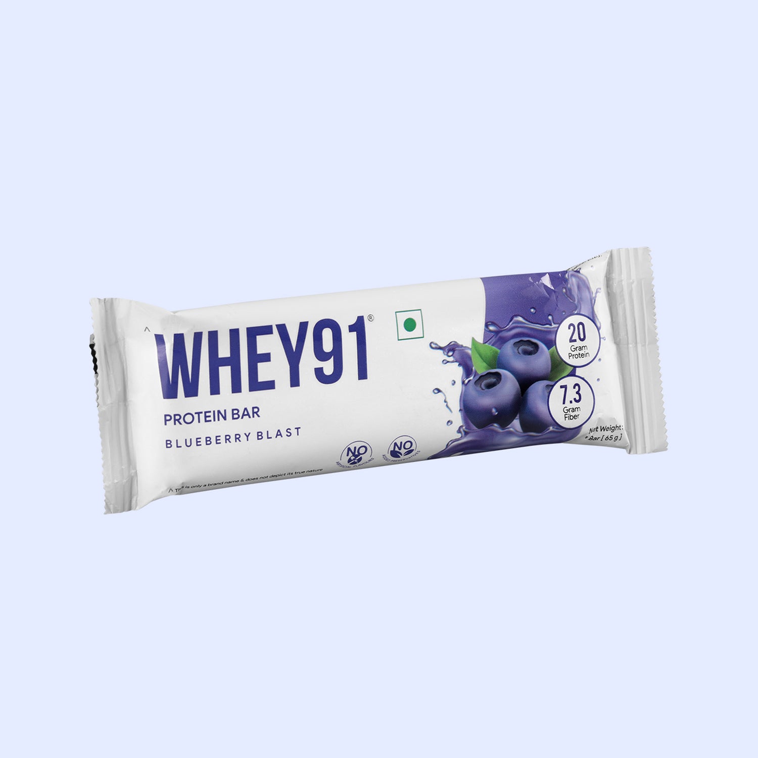 YOUR POWER SNACK: Fuel up fast with Whey 91 Protein Bar. Packed with Gold Standard Premium Protein, Lactoferrin, and rich blueberry flavour, it is your ideal healthy snack for any time of day.
