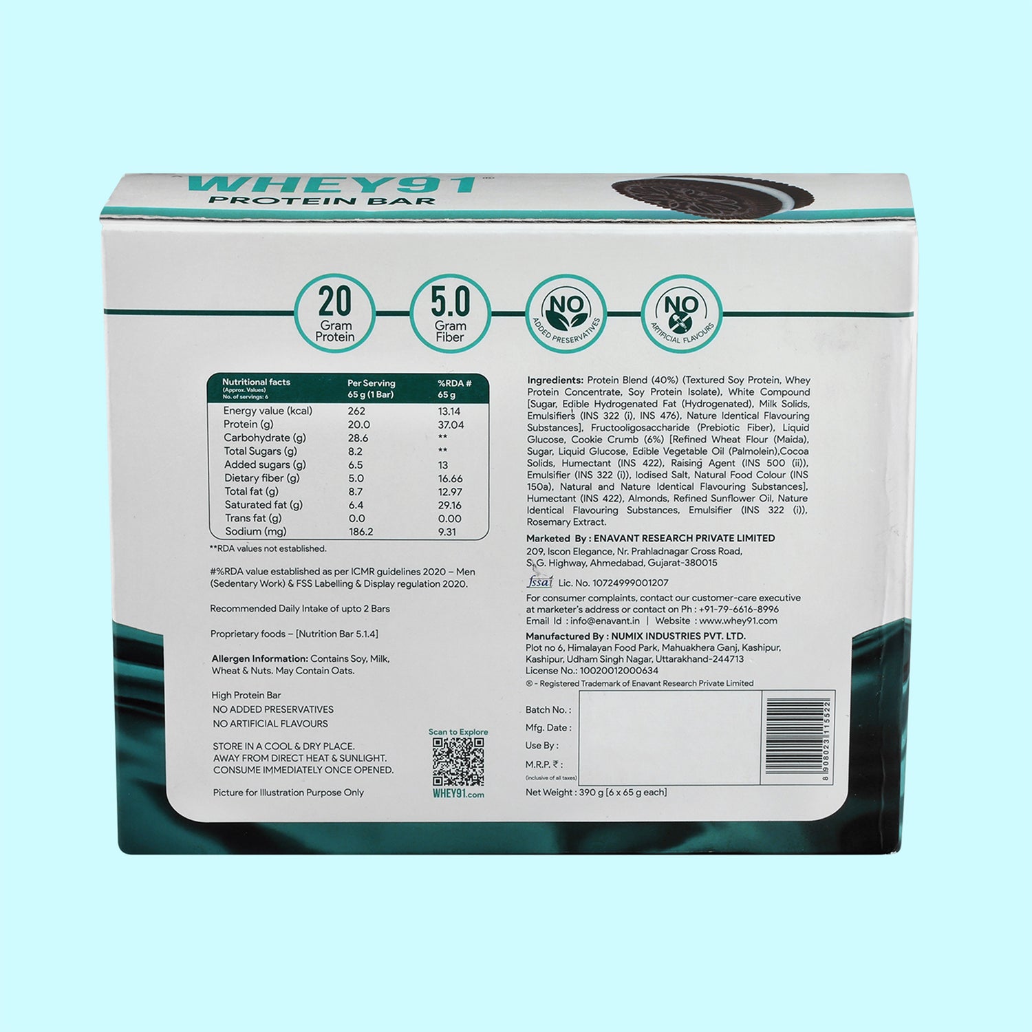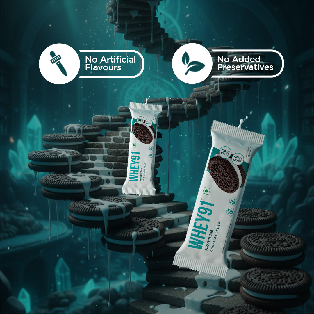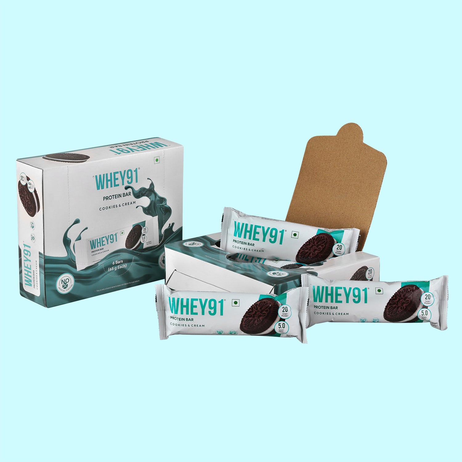 Whey91 Cookies & Cream Protein Bar, 20g Protein & 5g Fibre (Pack of 6 bars)